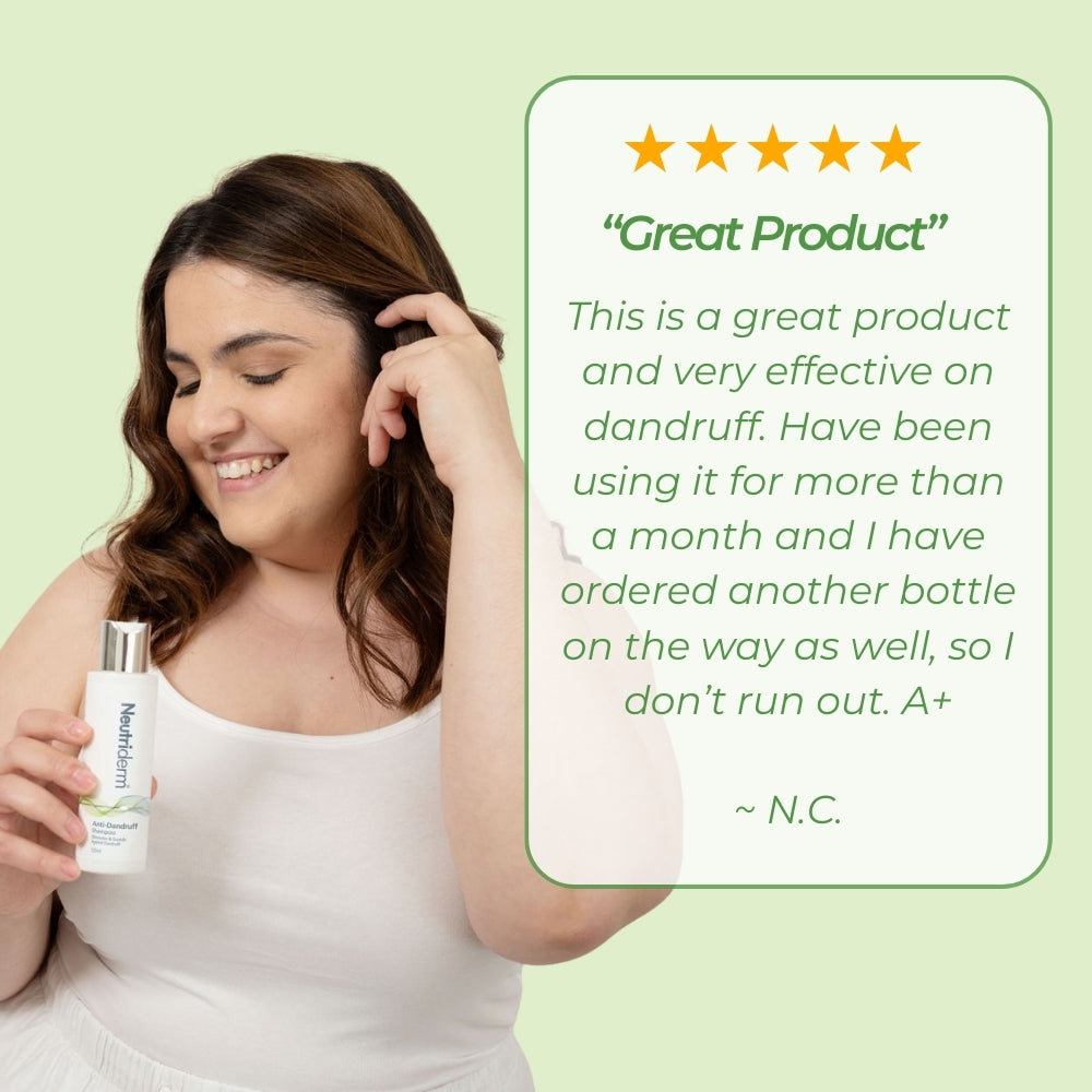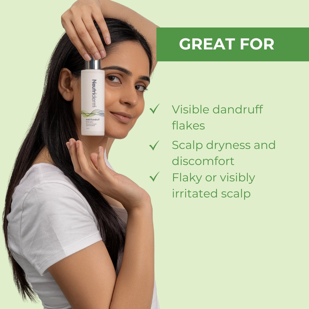 Soothe your scalp with this Neutriderm Anti-Dandruff Shampoo. This dandruff-eliminating shampoo contains a potent anti-fungal to kill the multiplying cells and reduce the growth rate of bacteria. This shampoo gently cleanses the scalp, removing excess sebum and dandruff flakes, leaving your hair fresh and clean.