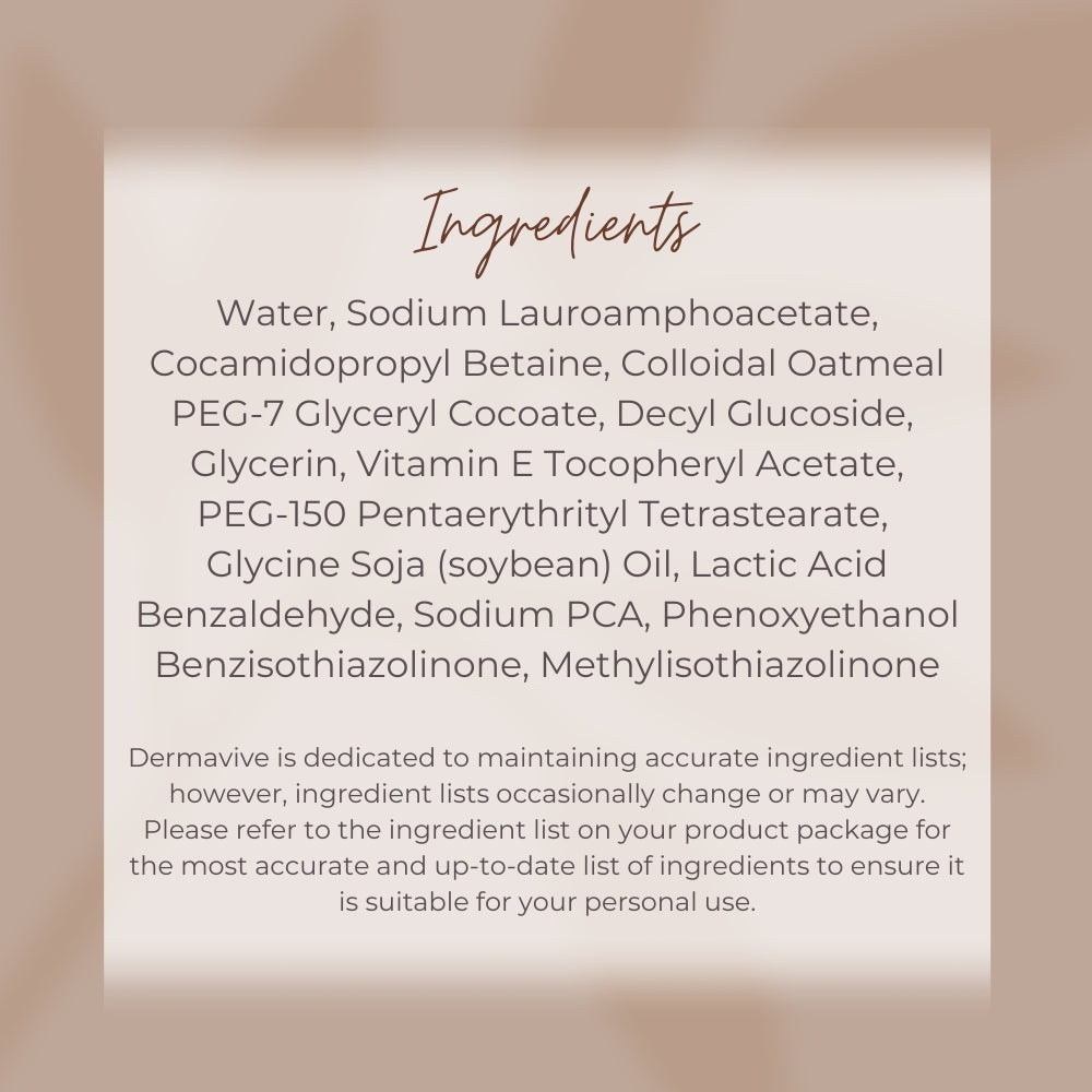 Water, Sodium Lauroamphoacetate, Cocamidopropyl Betaine, Colloidal Oatmeal