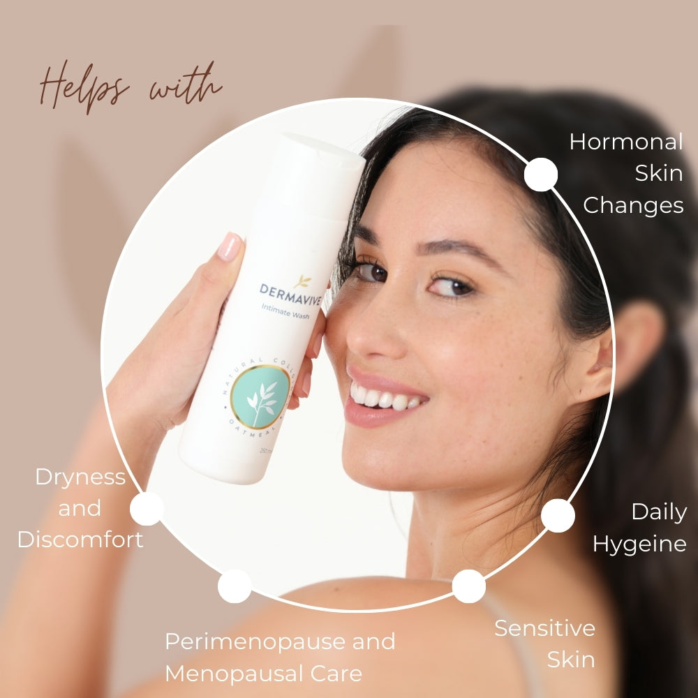 Perimenopause and Menopausal care: Dermavive Intimate Wash is suitable for Perimenopausal and Menopausal women who may experience skin changes due to changing hormones.