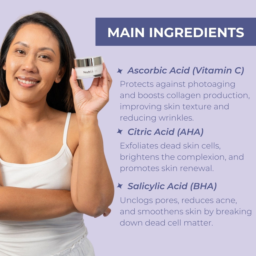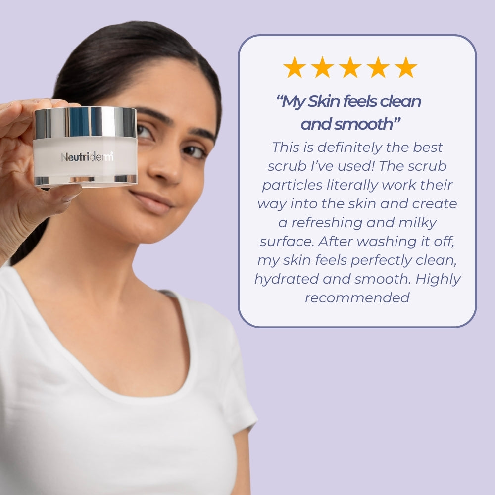 Revitalise your skin with the exfoliating facial scrub. The Neutriderm Vitamin C Scrub harnesses the power of Vitamin C to reduce dark spots and reveal radiant, glowing skin. It provides a superior exfoliation action without causing damage or irritation to the skin. Each use promotes healthy skin renewal, improvement in skin tone and texture, and reducing the signs of ageing.