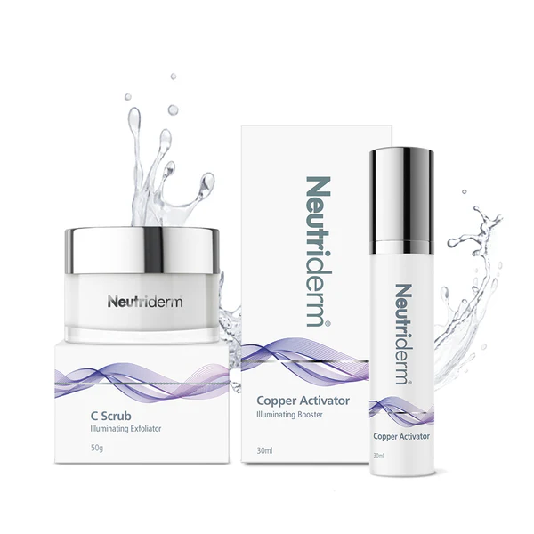 The Neutriderm Exfoliator Bundle is the perfect way to achieve vibrant, glowing skin. This package comes with the incredible Neutriderm C Scrub and the Neutriderm Copper Activator.